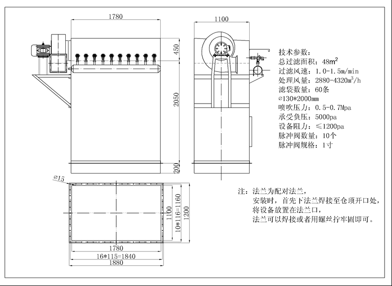仓顶脉冲除尘器结构组成部分(有灰斗)